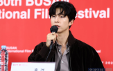 '제30회 부산국제영화제' 갈라 프레젠테이션 '굿뉴스'(감독 변성현) 기자회견이 19일 부산 우동 영화의전당 비프힐에서 열렸다. 배우 홍경이 인사말을 하고 있다. △멋짐 가득한 모습 부산=변성현 한경닷컴 기자 byun84@hankyung.com
